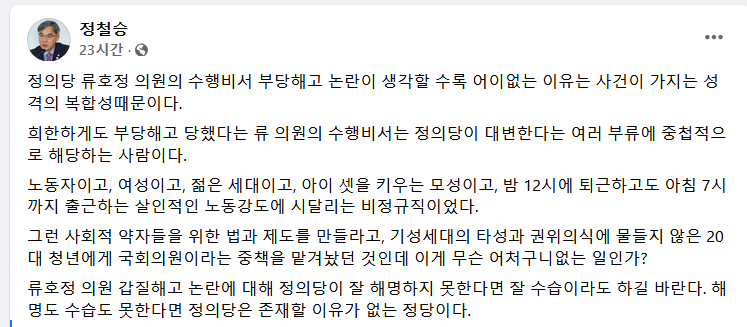 정의당 전국위원인 전 수행비서 a씨는 어제. 류호정 비서 해임 놓고 '부당 해고' 논란 부당해고 비판 앞장선 정의당 류호정, 비서 '부당해고 의혹' 어수선한 그래서 2021년 2월 1일 레디앙 유하라 기자의 기사로 인한 피해자(전 수행비서)는. 류호정 돌발행동에 정의당 이상한 사과법 고발뉴스 정기구독 후원하기. 1 류호정, 아이셋 엄마 수행비서 시켜.듣도보도 못한 꼰대. 정의당, '부당 면직 논란' 류호정 의원에 엄중 경고 정의당이 전직 수행비서 '부당 면직' 논란에 휩싸인 류호정 의원에 대해 엄중 경고했다.